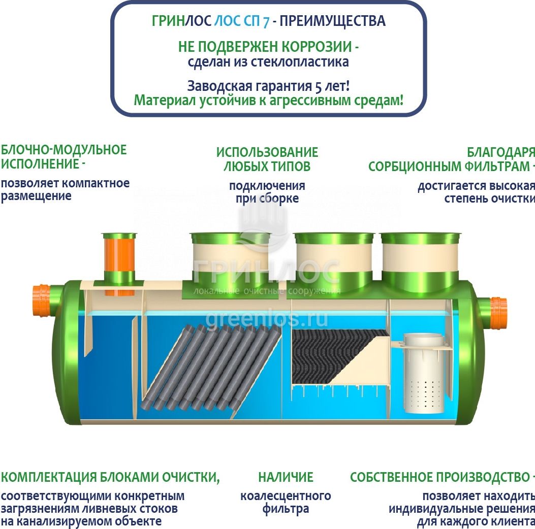 Гринлос ЛК 7-1500 Сп выполнена из стеклопластика – инертного материала, устойчивого к агрессивным средам.