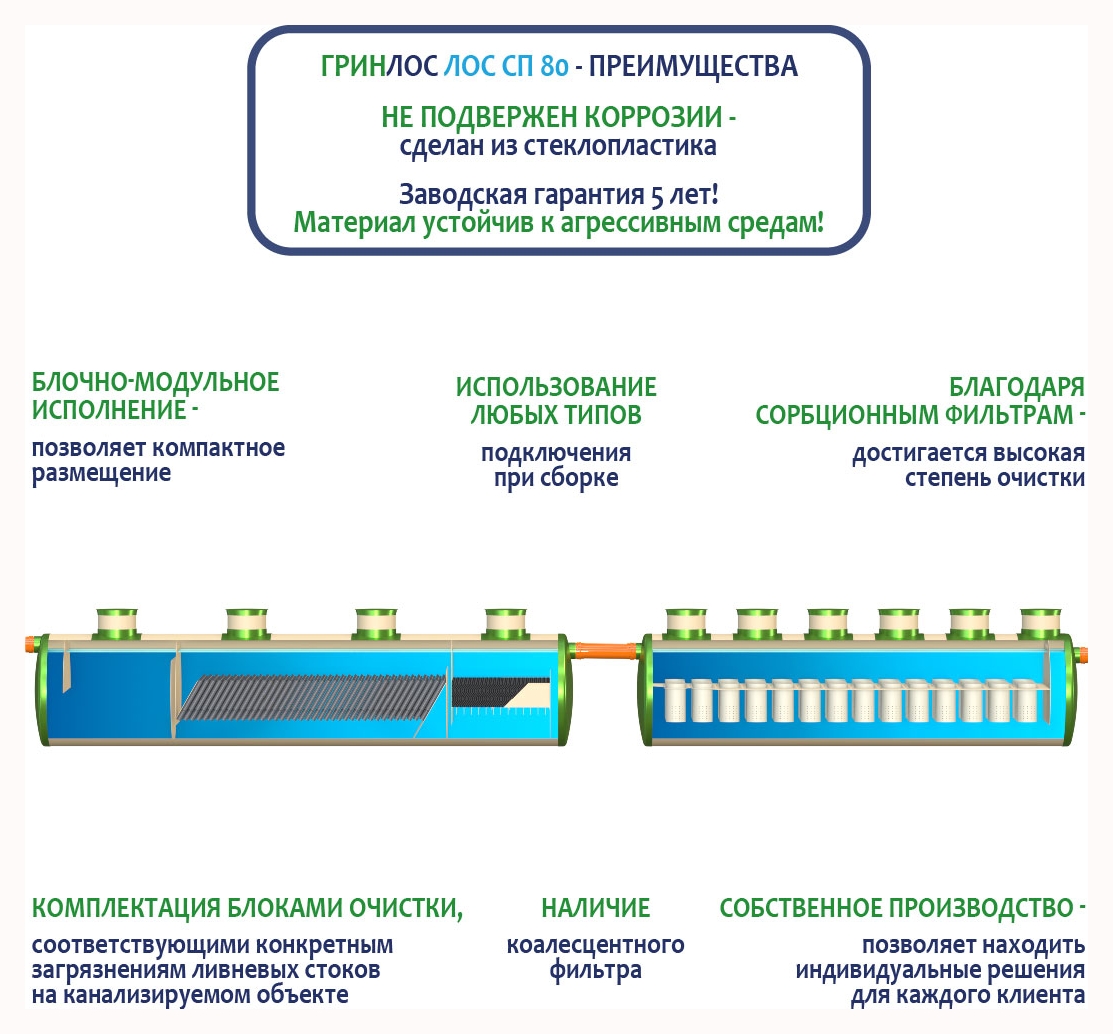 Гринлос ЛК 80-2300 Сп выполнена из стеклопластика – инертного материала, устойчивого к агрессивным средам.