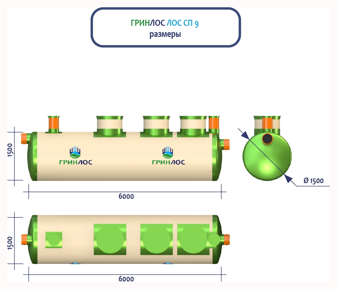 ГРИНЛОС Ливневая канализация 9-1500 стеклопластиковая представляет собой очистное сооружение ливневых стоков габаритами 6000*1500*1500 мм - 1 корпус. Общий объем корпусов составляет 10.6 м3. Для установки станции потребуется применение вспомогательного оборудования.