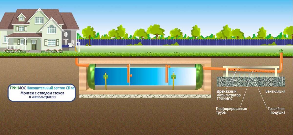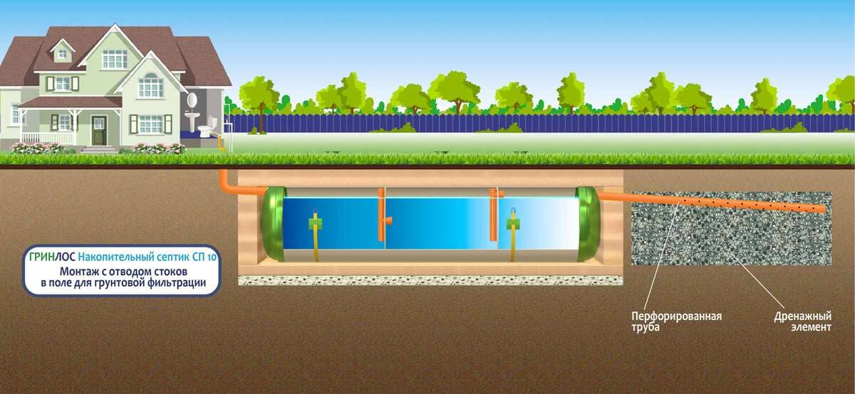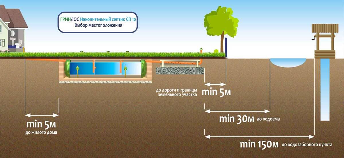 При планировке участка для канализационной системы с накопительным септиком ГРИНЛОС СП 10 следует учитывать следующие рекомендации: