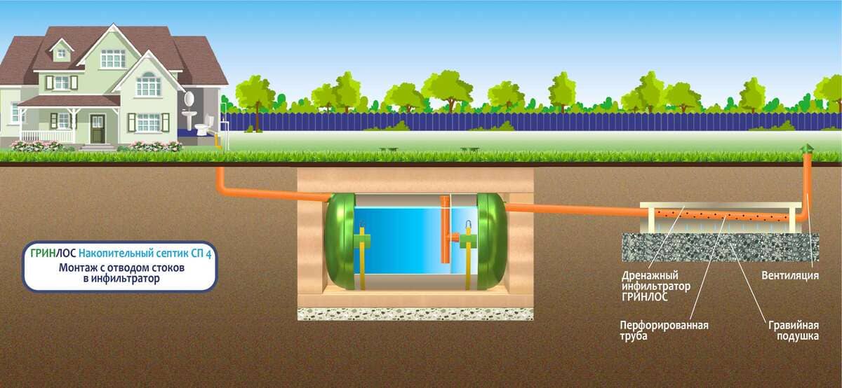 При планировке участка для канализационной системы с накопительным септиком ГРИНЛОС СП 4 следует учитывать следующие рекомендации: