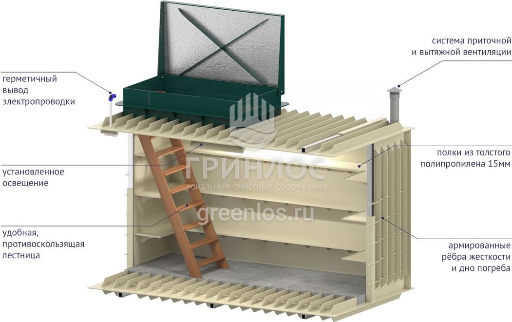 Особенности погреба Гринлос Погреб Погреб ЛК 3500*1500*2000