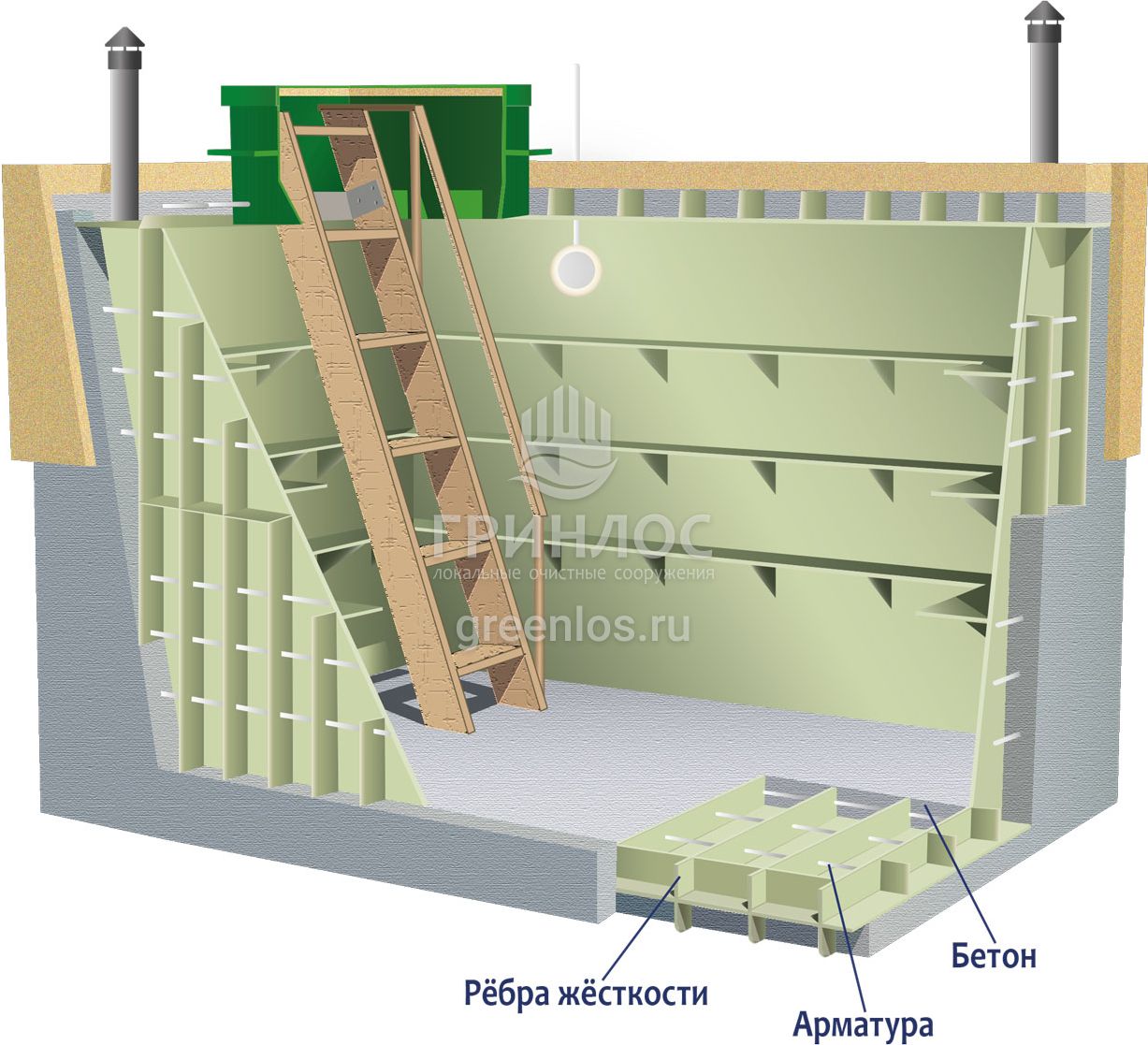 Обратная засыпка (бетонирование) Гринлос Погреб ЛС 2500*1500*2000