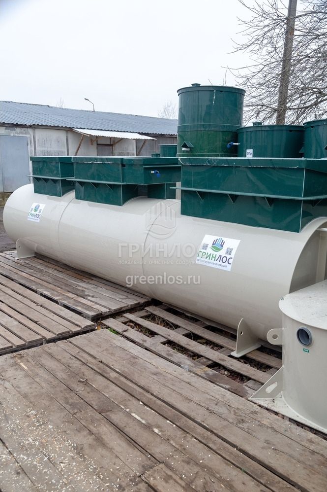ГРИНЛОС Профи 15 — станция биологической очистки с залповым сбросом 950 л и производительностью 3.4 м3/сутки, что позволяет устанавливать септик на территории, где количество постоянно проживающих не превышает 17 человек.