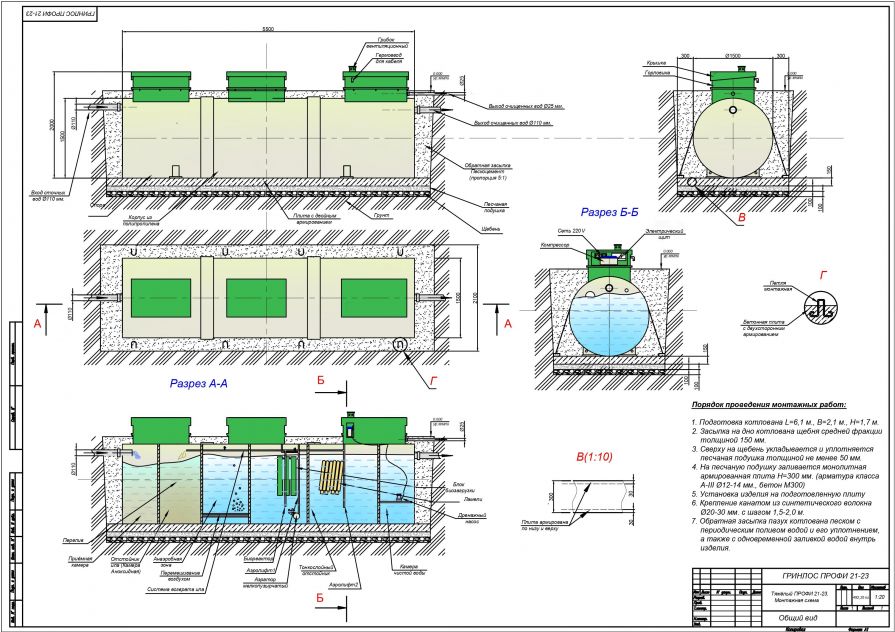 Монтаж септика ГРИНЛОС Профи 25