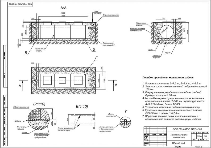 Монтаж септика ГРИНЛОС Пром 60
