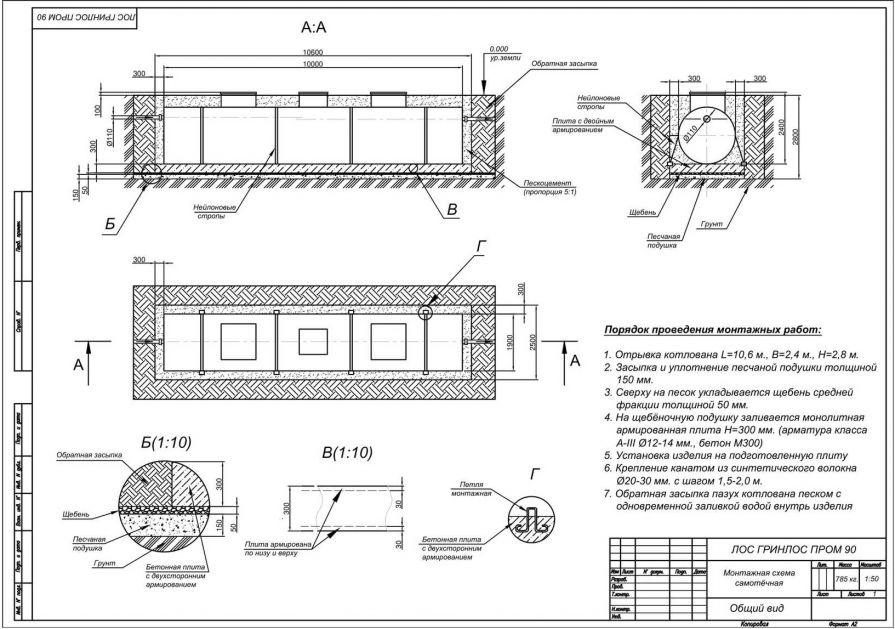 Монтаж септика ГРИНЛОС Пром 90