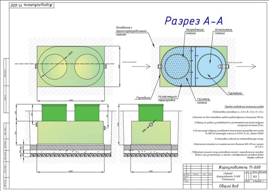 Монтаж Гринлос Жироуловитель 11-600 Горизонтальный Подземный
