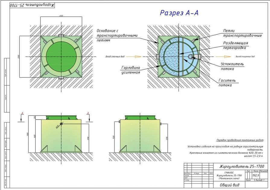 Гринлос Жироуловитель 25-1700 Вертикальный Наземный ставят в технические, подвальные помещения. Требуется, чтобы к ним был организован удобный подход, подъезд, чтобы проводить эксплуатацию, подключение к производственной канализации.