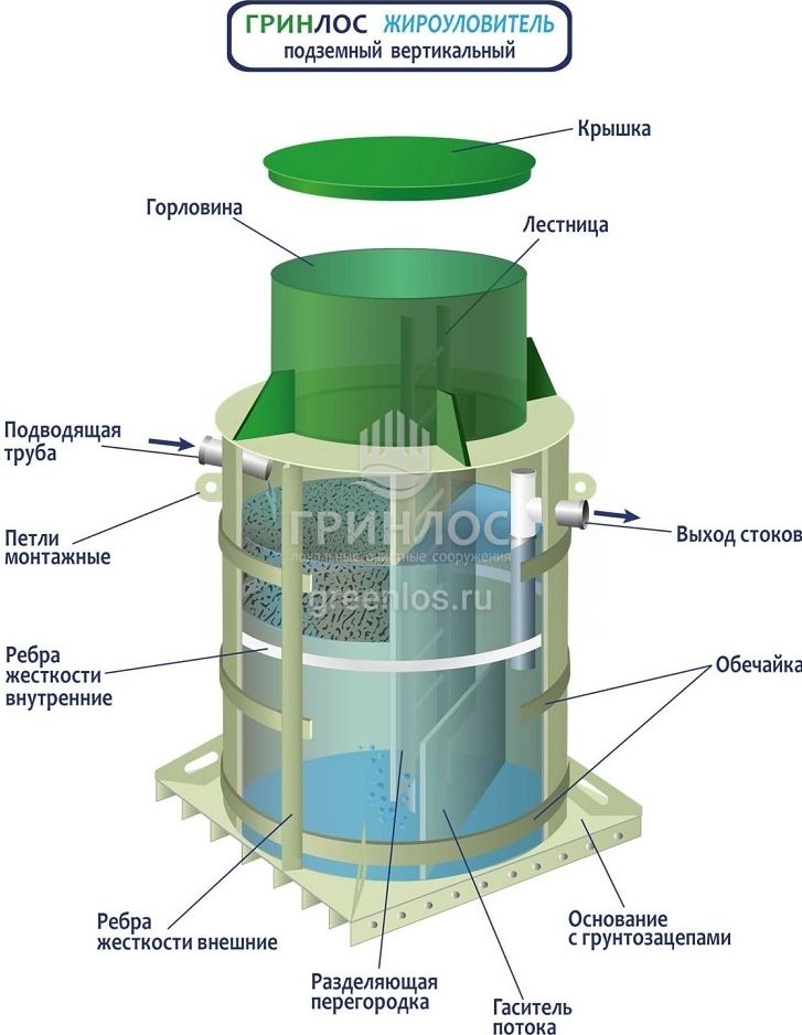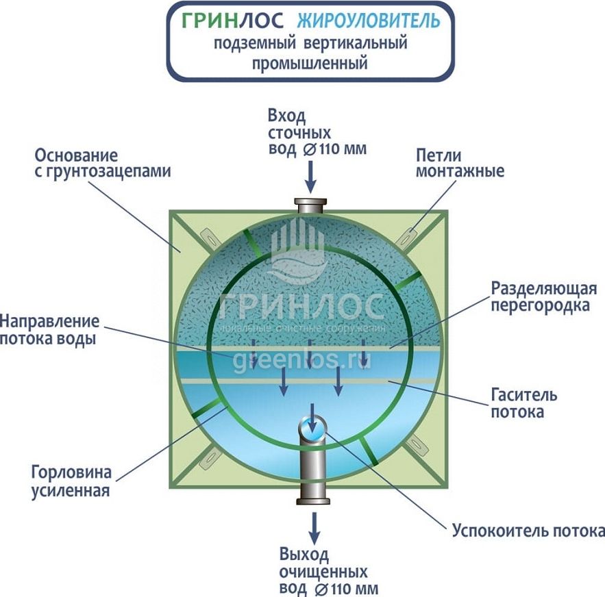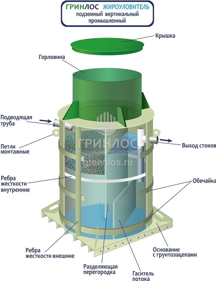 Внутреннее устройство и принцип работы Гринлос Жироуловитель 3-240 Вертикальный Подземный