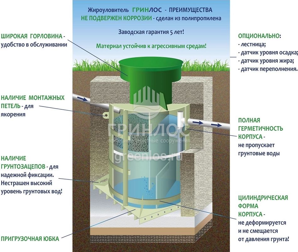 Преимущества Гринлос Жироуловитель 3-240 Вертикальный Подземный