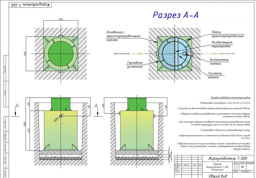 Монтаж Гринлос Жироуловитель 7-500 Вертикальный Подземный