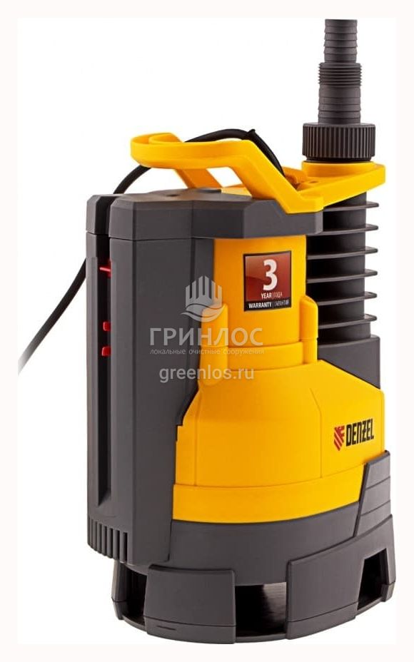 Дренажный насос Denzel DPX650 мощностью 650 Вт и производительностью 11500 л/ч обеспечивает напор 7 м и эффективно справляется с перекачиванием стоков с фракциями диаметром до 35 мм. Максимальная глубина погружения – 7 м.