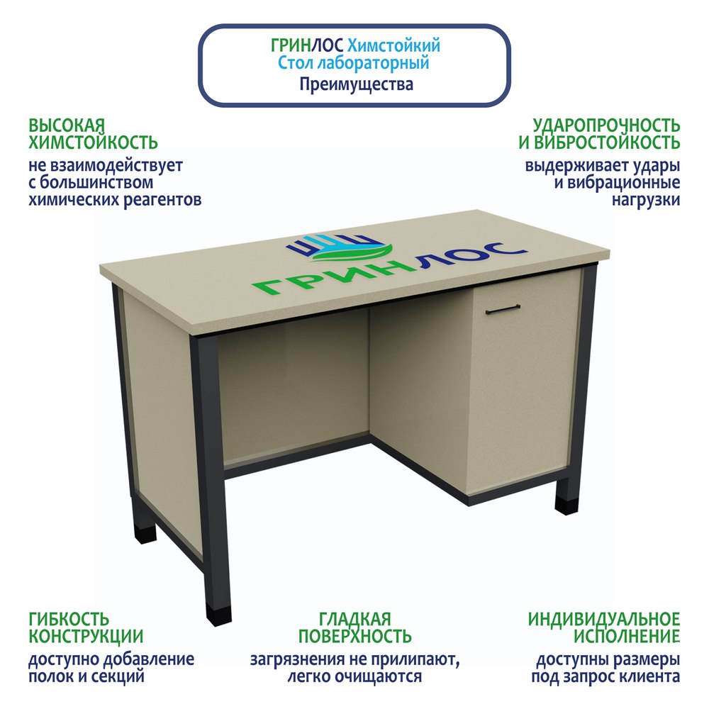 Лабораторные столы ГРИНЛОС предназначены для использования в научных и исследовательских учреждениях, а также в образовательных лабораториях. Столы выполнены из химически стойких полимеров, которые защищены от воздействия кислот, щелочей и других агрессивных веществ соответствуют всем стандартам безопасности.