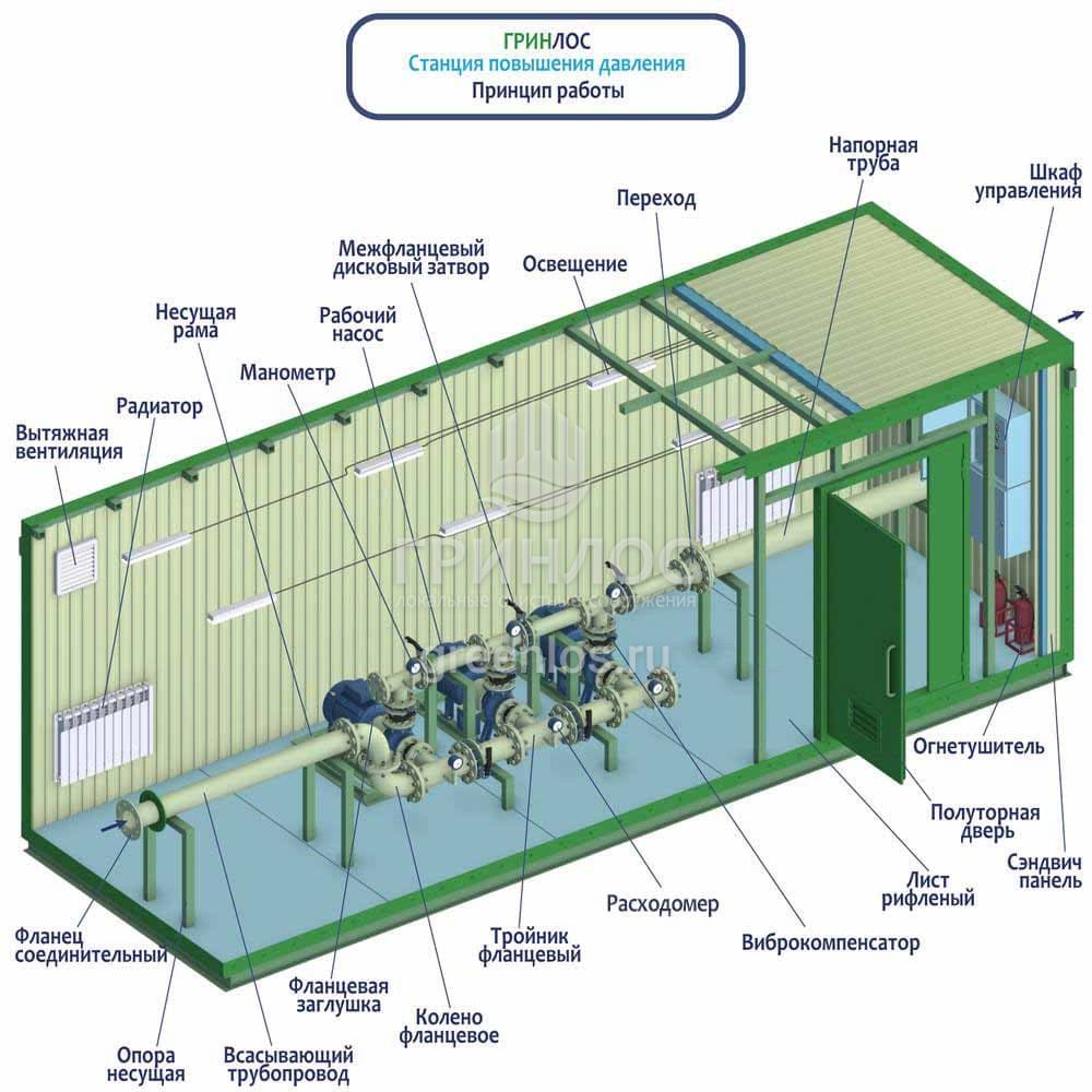 Устройство и принцип работы насосной станции повышения давления НСПД 40-100