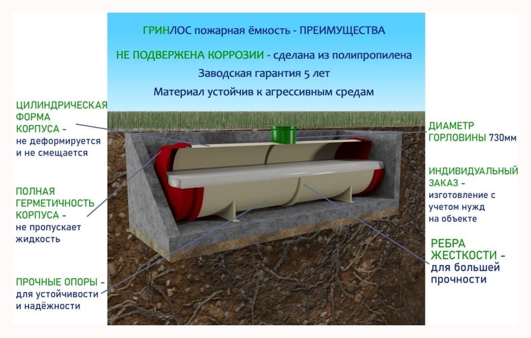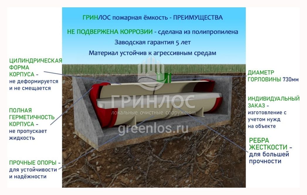 Особенности ГРИНЛОС Пожарный резервуар 63 м3