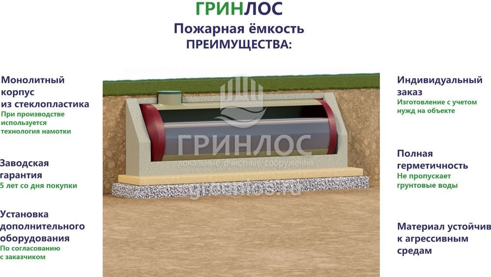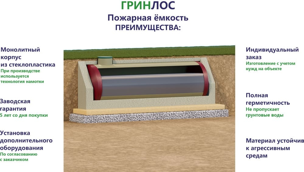 Особенности Гринлос Пожарный резервуар 70-3000 стеклопластиковый