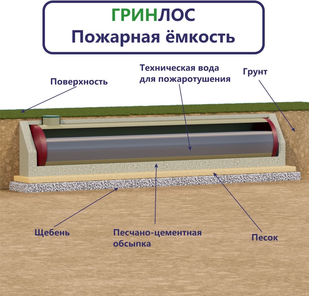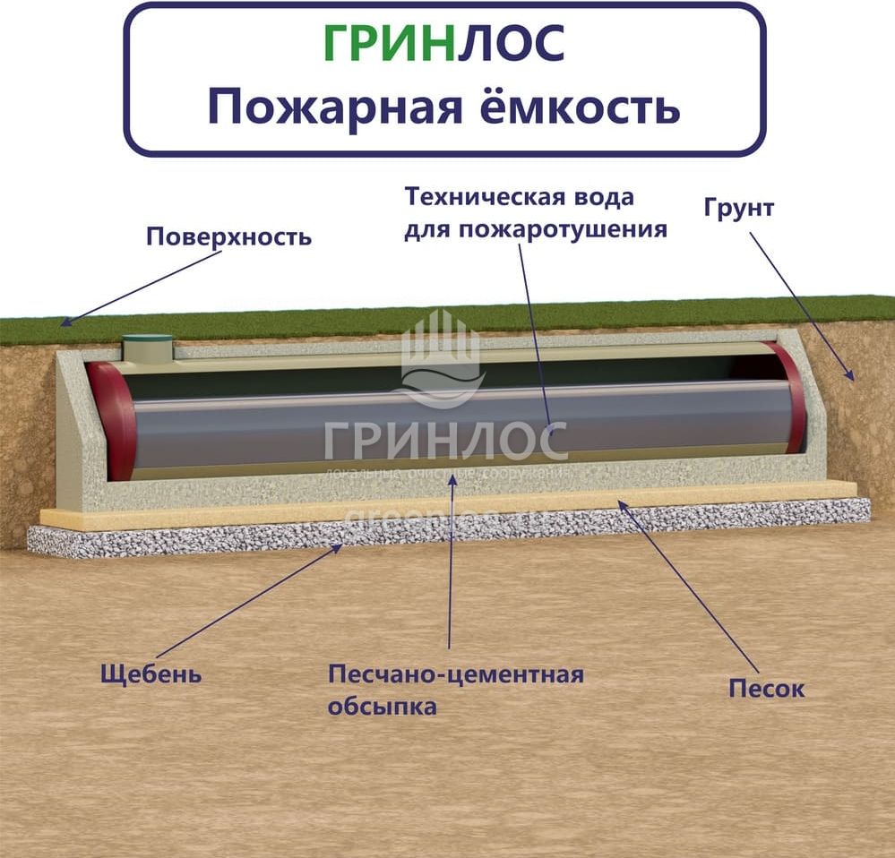 - Технический паспорт «ГРИНЛОС Пожарный резервуар стеклопластиковый»;