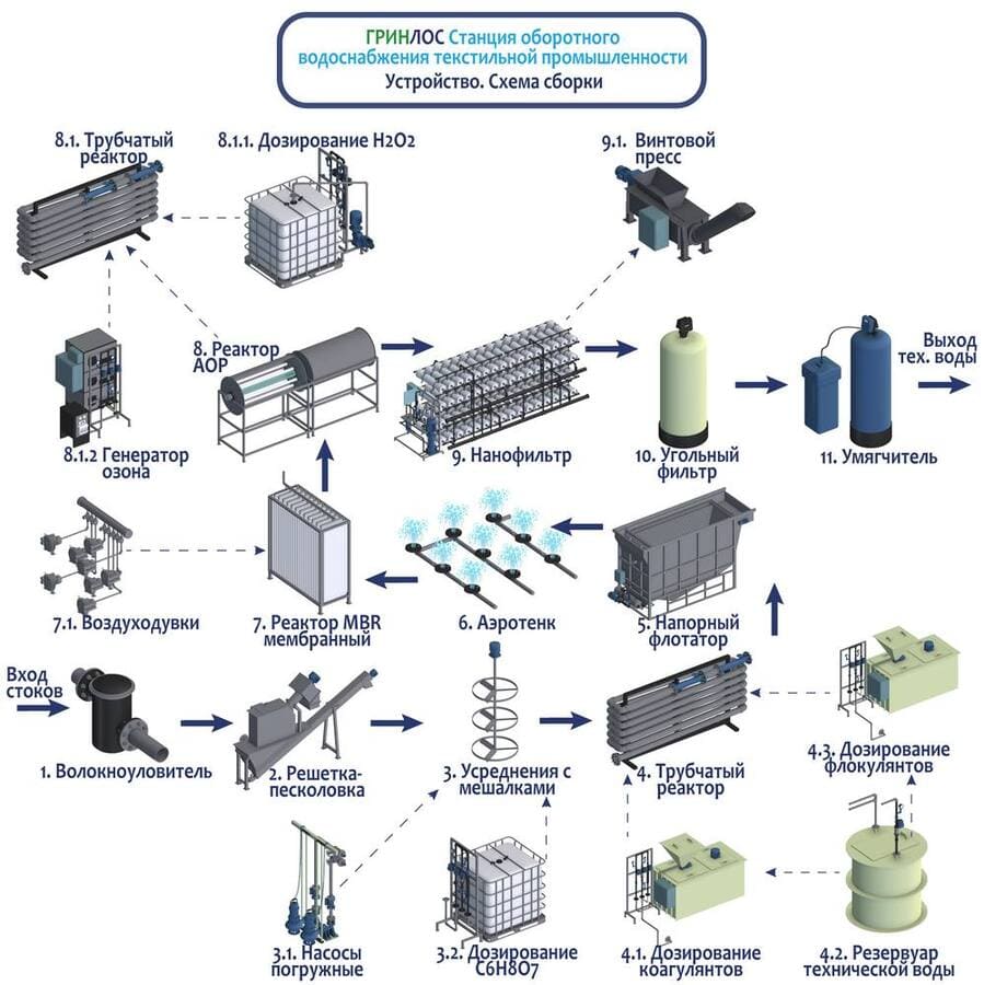 Схема устройства очистных сооружений стоков текстильных предприятий